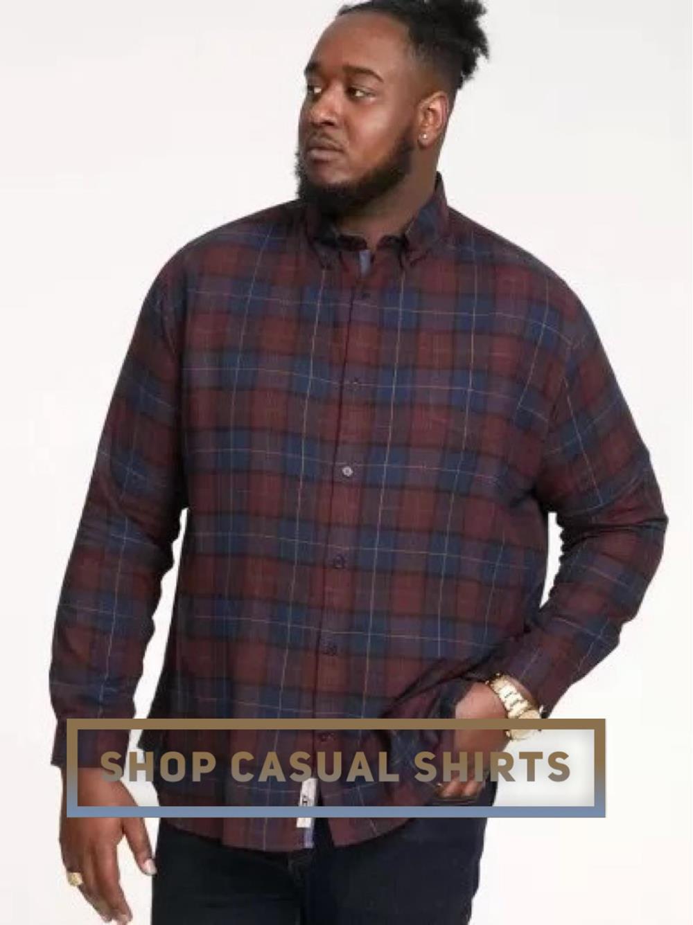If you're looking for a wardrobe upgrade, some new office attire, a plus-sized three-piece suit, or to stock up on socks, we've got you covered. Explore the full range of big men's clothes today and find your new style!